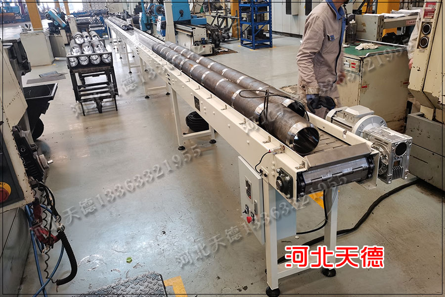 由于深槽托輥裝置中間的兩托輥呈V型,兩側托輥的槽角比較大,也使物料的較大傾角相應提高, 在膠帶彎曲應力和剛度的范圍內,要減小深槽托輥底部膠帶的彎曲半徑,較大限度地增加導來摩擦系數,從而增加鏈板輸送線的提升角 度。物料防滾滑裝置的應用:當鏈板輸送機坡度很大時,物料的穩(wěn)定性很差,即使采用前面介紹的深槽托輥組也防止不了運行中物料下滑的問題,設計了適用與大 傾角下輸送機的物料防滑滑裝置。