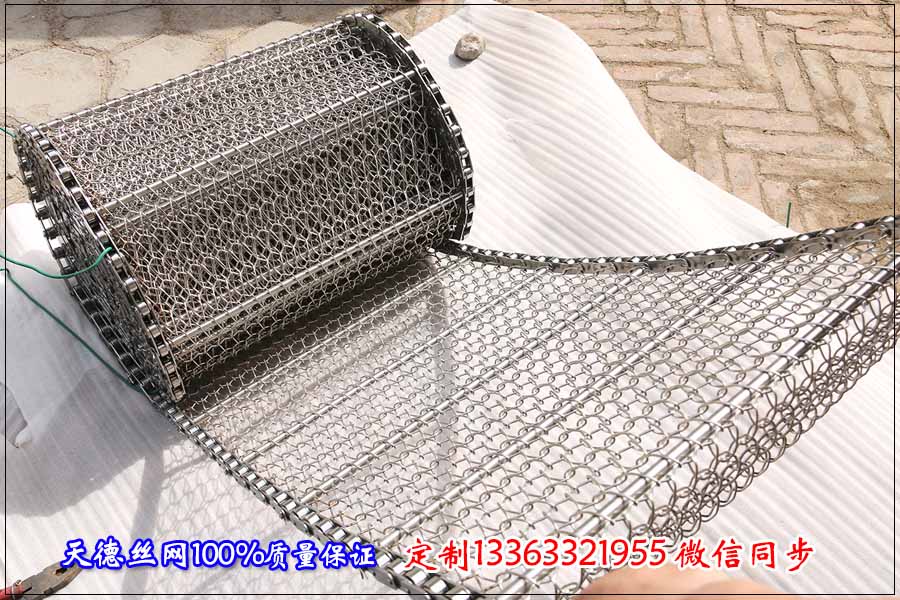 今天河北天德絲網(wǎng)制品有限公司不銹鋼網(wǎng)帶就給大家介紹: 面食在生產(chǎn)線中一般進(jìn)行烘干比較多,因此在烘干面食的時(shí)候我們要采用透氣性好的輸送網(wǎng)鏈,一般透氣性好的輸送網(wǎng)鏈有鏈條輸送帶、鏈板輸送帶、乙型輸送帶、雙旋輸送帶、螺旋型輸送帶等這幾種形式,其中雙旋輸送帶和螺旋型輸送帶也叫做鏈條輸送帶,不同的是在根據(jù)使用的情況可以不加裝兩側(cè)的鏈條,直接用滾筒帶動(dòng)傳送。 鏈條式不銹鋼網(wǎng)帶采用鋼絲編織、鋼桿和鏈條的鏈接組裝而成,根據(jù)要烘干的面食的大小定制孔徑的大小,孔越大烘干速度越快,當(dāng)然也的保證每米輸送帶上面的載重量,孔越密承載能力越高。鏈板式不銹鋼輸送帶采用不銹鋼板材沖壓成型,使用在烘干行業(yè)中,要在鏈板的表面進(jìn)行打孔,打孔直徑會(huì)根據(jù)面食的大小決定,孔越大烘干速度越快,當(dāng)然孔越大承載能力越差。